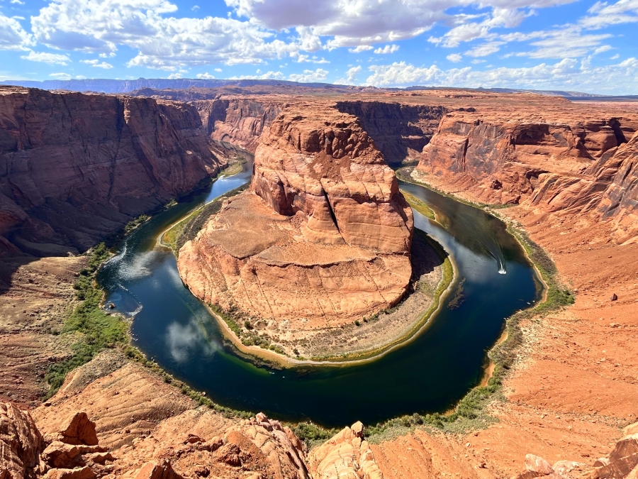 Elsőként a Horseshoe Bend nevű helyet néztük meg. Ez a Colorado folyó patkó alakú kanyarulata, amelyet 300 méter magas, vörös sziklafalak vesznek körbe. Az ikonikus folyókanyarulat az USA egyik legtöbbet fotózott helyszíne. A 10 dolláros belépőjegy megváltása és a leparkolás után egy 15-20 perces séta várt ránk a kietlen kősivatagban a folyókanyonig. Meghökkentő volt, ahogy egyszer csak elénk tárult a 300 méter mély kanyon, benne a lusta kígyóként kanyargó Colorado folyóval. Ez a hely pontosan olyan lenyűgöző élőben is, mint a képeken. Sokáig elidőztünk itt, és kihasználva a délutáni fényeket, amelyek pont előnyösek ezen a helyszínen, rengeteg képet és videót készítettünk.