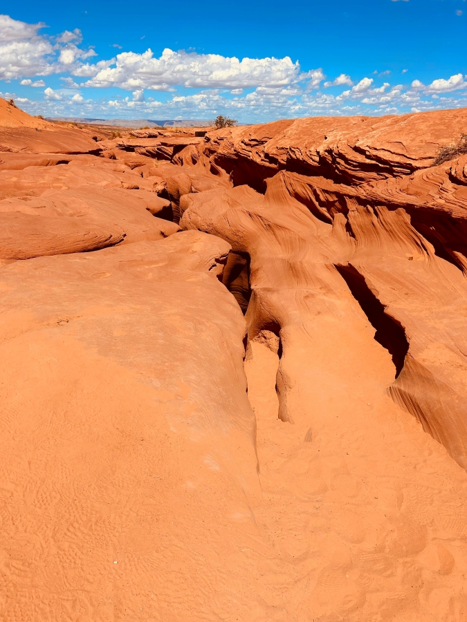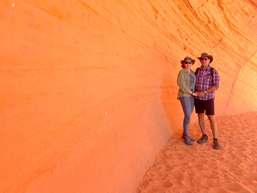 Amikor véget ért a túra, és feljöttünk a felszínre a kanyon kijáratánál, visszanézve a sivatagi tájra, láthattuk, hogy miért is hívják réskanyonoknak ezeket a csodás természeti képződményeket. A kanyonból a felszínen csak egy keskeny rés látszott, ami szinte csak egy repedésnek tűnt a laza, homokos talajon, és hihetetlen érzés volt, hogy néhány perccel korábban még odalent sétáltunk. A réskanyonok lenyűgöző természeti alkotások, melyeket a folyóvíz eróziója alakít ki a puha sivatagi kőzetekben. A réskanyonok azonban veszélyesek is lehetnek, méghozzá épp a szűkösségük miatt: egy hirtelen érkező villámáradás esetén nincs hova menekülni, és ez életveszélyes lehet a túrázók számára. Történt már ilyen jellegű tragédia az Antilop-kanyonban, és éppen ez az oka annak, hogy a kanyon ma már csak idegenvezetéssel, szervezett túrák keretében és ellenőrzött körülmények között látogatható. A réskanyonok Arizona és Utah sivatagos vidékeinek jellegzetességei, számos hasonló kanyon található ezen a környéken, melyek közül egyértelműen az Antilop-kanyon a legismertebb, és egy abszolút kötelező látnivaló ebben a régióban. Nehezen tudtuk felfogni, hogy ide is sikerült eljutnunk. Napról napra bakancslistás álmaink váltak valóra, és eszméletlenül gyönyörű helyeken jártunk.