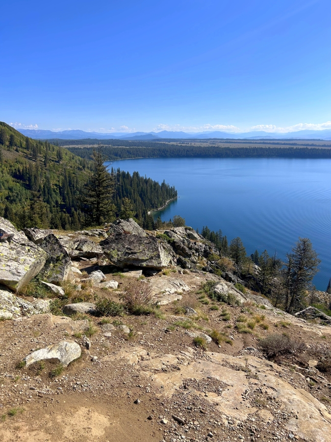 Elsőként a Jenny-tó környékét fedeztük fel. Egy transzferhajóval átmentünk a tó túlpartjára, hogy megcsináljuk a nemzeti park egyik legismertebb túráját. A tópartról indultunk el, majd a vadregényes fenyőerdőben túrázva és sziklákon felkapaszkodva jutottunk el a Hidden Falls vízesésig, ami a legfőbb látnivalója ennek a túraútvonalnak. A vízesés közelében láttunk a fák között jávorszarvasokat legelészni és pihenni. Innen haladtunk tovább felfelé, mígnem elértük az Inspiration Point nevű kilátópontot, ahonnan pazar kilátás tárult elénk a nemzeti parkra és az alattunk elterülő tóra.